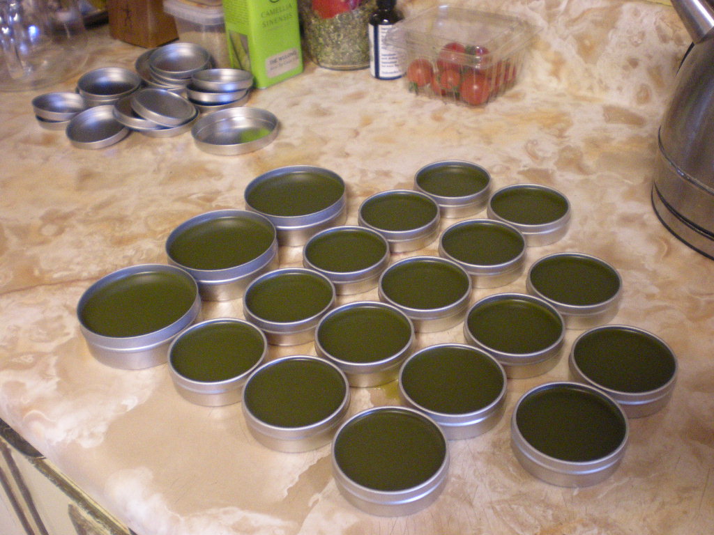 7 – If you think there may be excess water in your oil (probable if you made chickweed oil for instance) and you didn’t use option B back in step 3, then you may want to place the finished product in an uncovered oven-safe container and heat at the lowest possible setting, usually 170-190F, for a few hours. This will help to evaporate any moisture that could cause the oil to go bad.