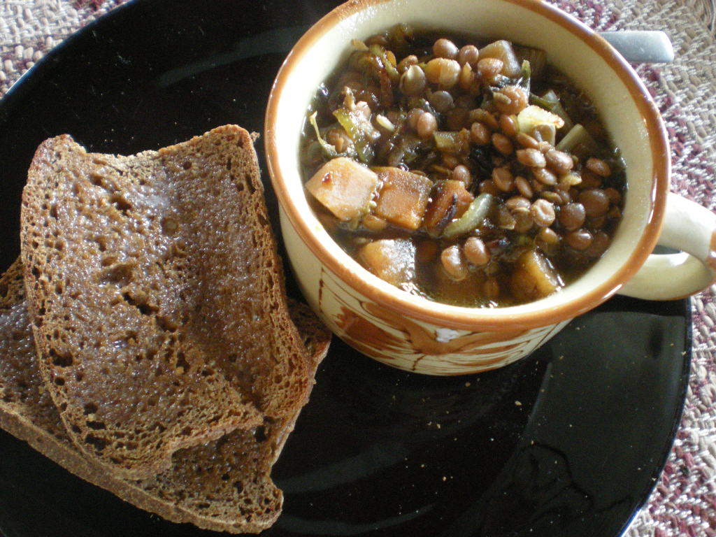 The tonic soups that have a regular place in my own kitchen rotation tend to involve a slow cooker since it doesn’t involve watching the pot and also leaves time for real life outside the kitchen during a busy work week. Here’s the recipe for the soup in the picture that goes with this post; it’s a vegetarian recipe (with vegan alternative in brakets) that’s got a really deep and rich flavour: