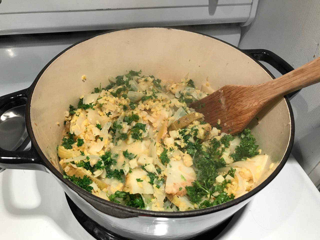 - Uncover the pot again. Taste again and add the parsley as well as tweaking any tastes based on personal preference (like adding some black pepper for example). Stir the parsley into the stew, cover again. Turn off the heat and let the stew sit another 5 to 10 minutes before uncovering a final time.