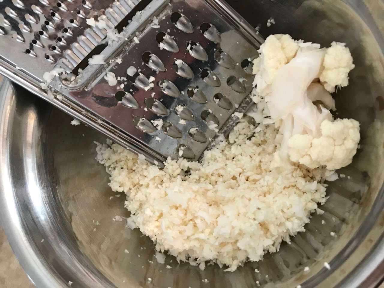- 4 cups grated/riced cauliflower (see note at the end on how to do that)