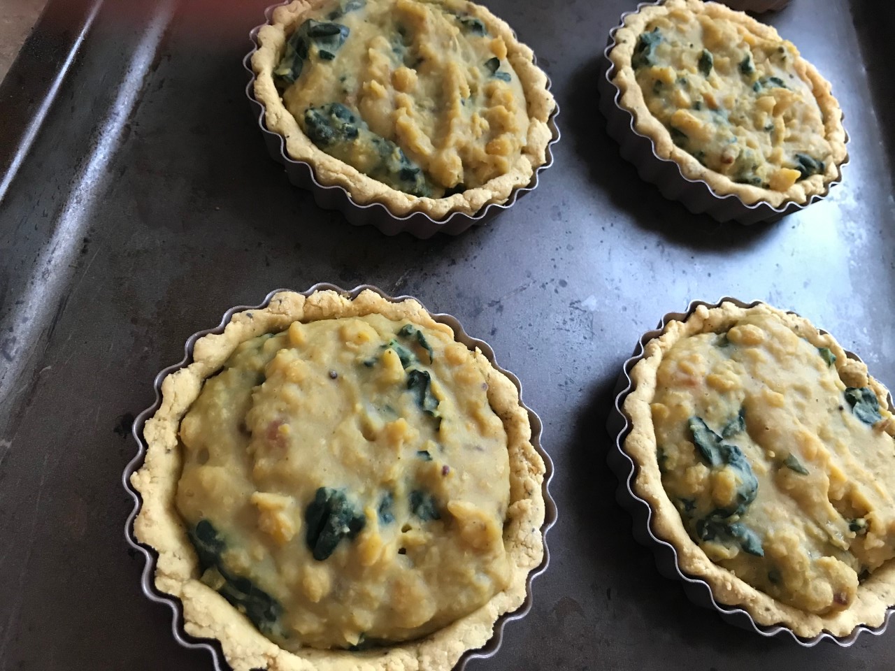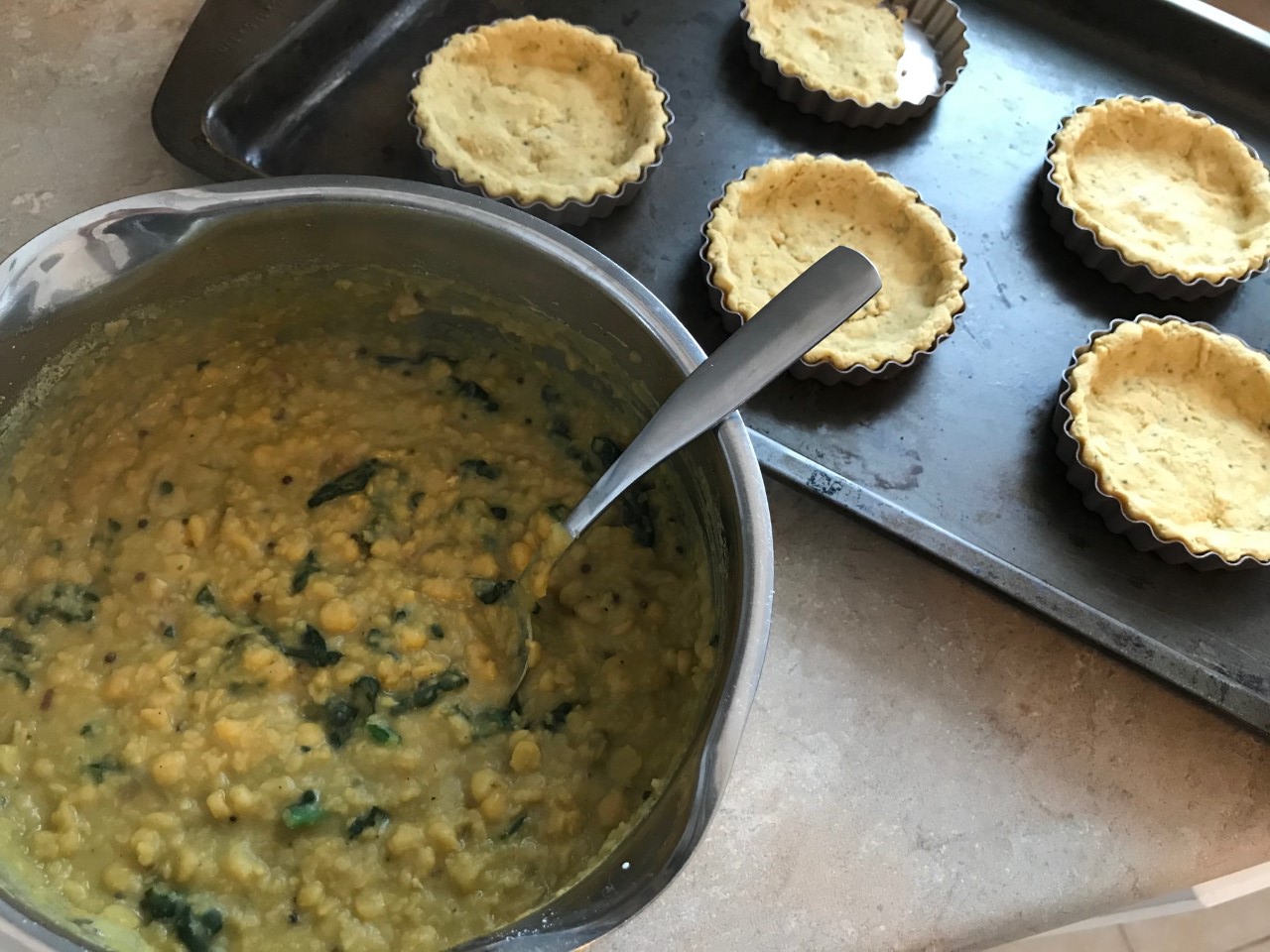 - Fill each of the tart shells with a heaping portion of the chana dal mixture.