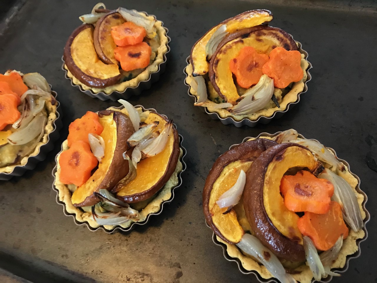 - Top each of the filled tart shells with an artfully arranged assortment of roasted vegetables (or not so artfully arranged – it doesn’t matter, it will be super-awesome anyway).