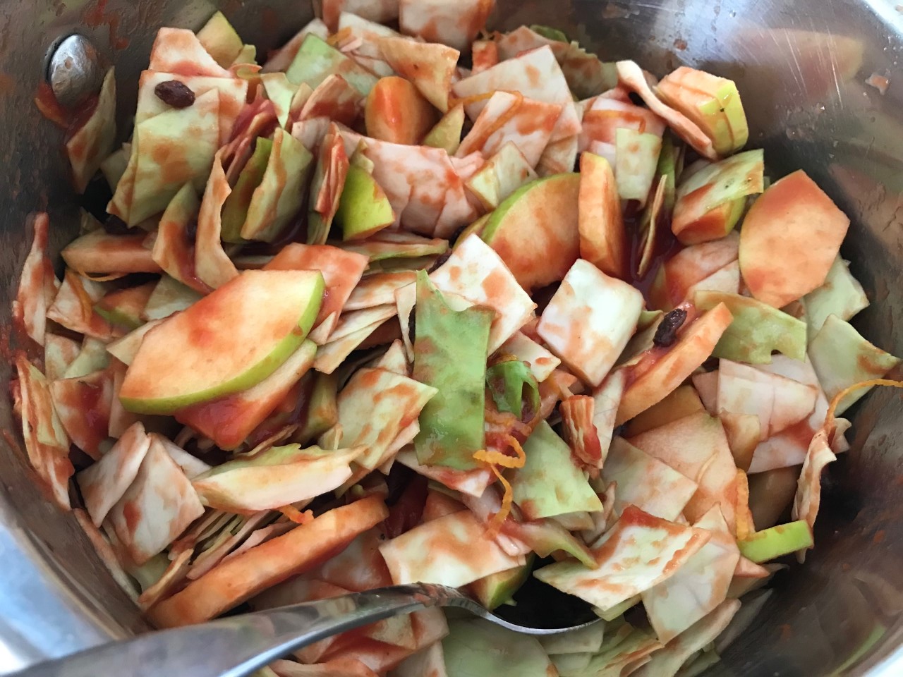 - 1 cooking apple (Granny Smith preferred), quartered, cored and sliced; no need to peel